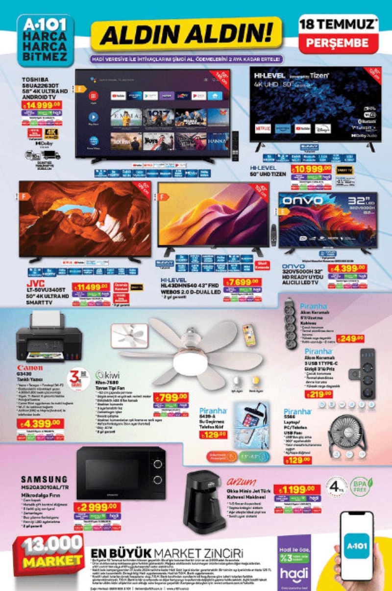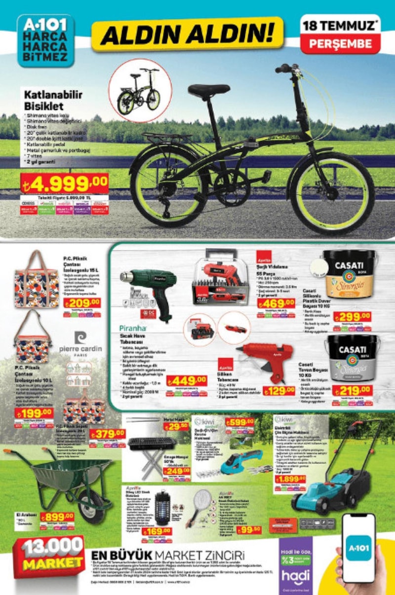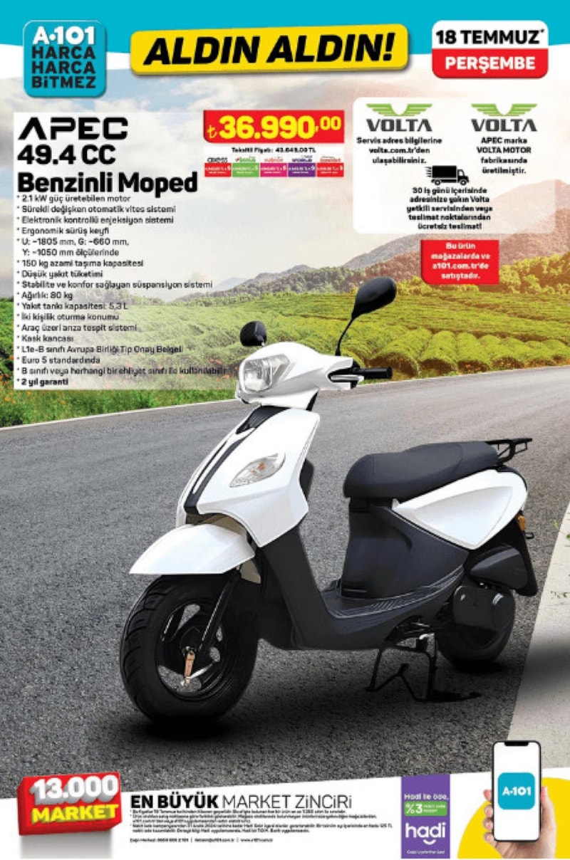 Türkiye’nin uygun fiyatlı marketlerinden A101 18 Temmuz tarihli kataloğunu yayımladı. Bu hafta 50 CC motosiklet, tavan tipi fan ve onlarca elektrikli aletler indirimli fiyatlarıyla alıcılarını bekliyor. İşte A101 18 Temmuz aktüel katalog...
