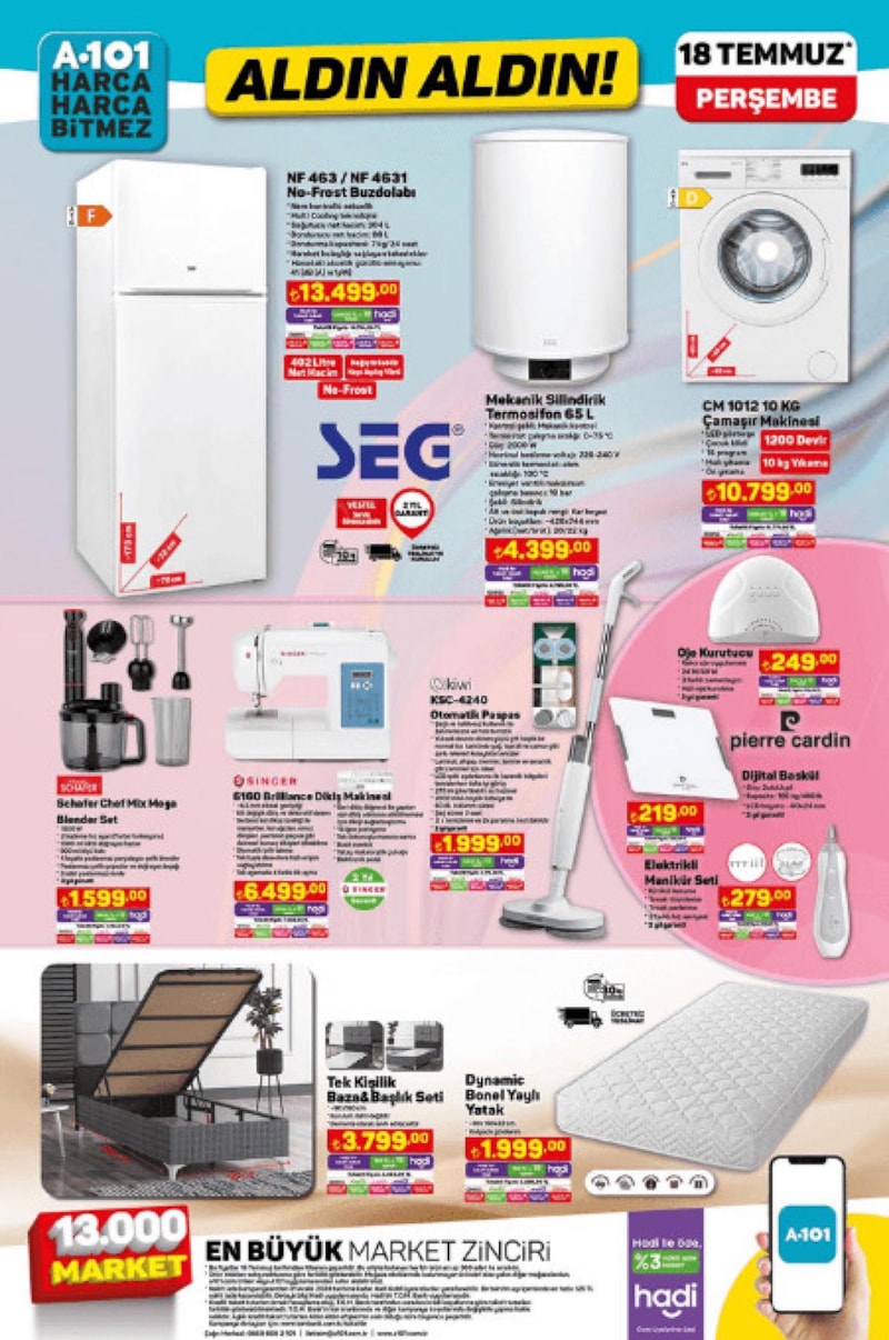 A101, 18 Temmuz Perşembe gününden itibaren raflarını indirimli ürünlerle dolduruyor.