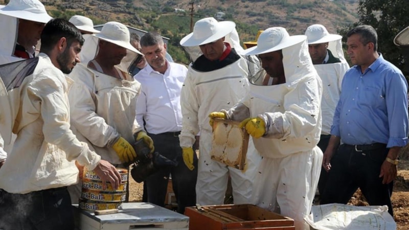 Muş Valisi Avni Çakır, Tarım ve Kırsal Kalkınmayı Destekleme Kurumu (TKDK) ve Tarım ve Orman İl Müdürlüğü'nden hibe desteği alarak arıcılık yapan Bağlam ailesinin bal hasadına katıldı.