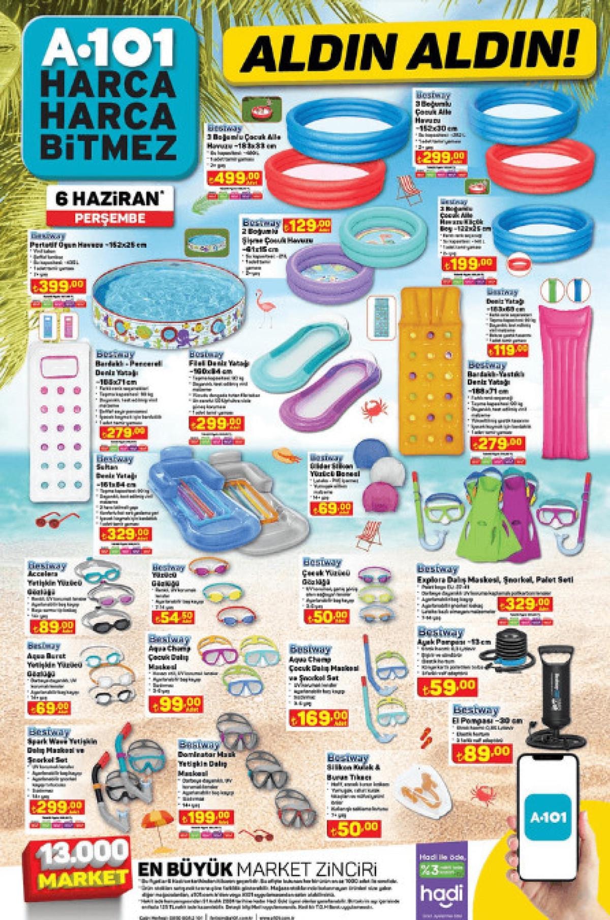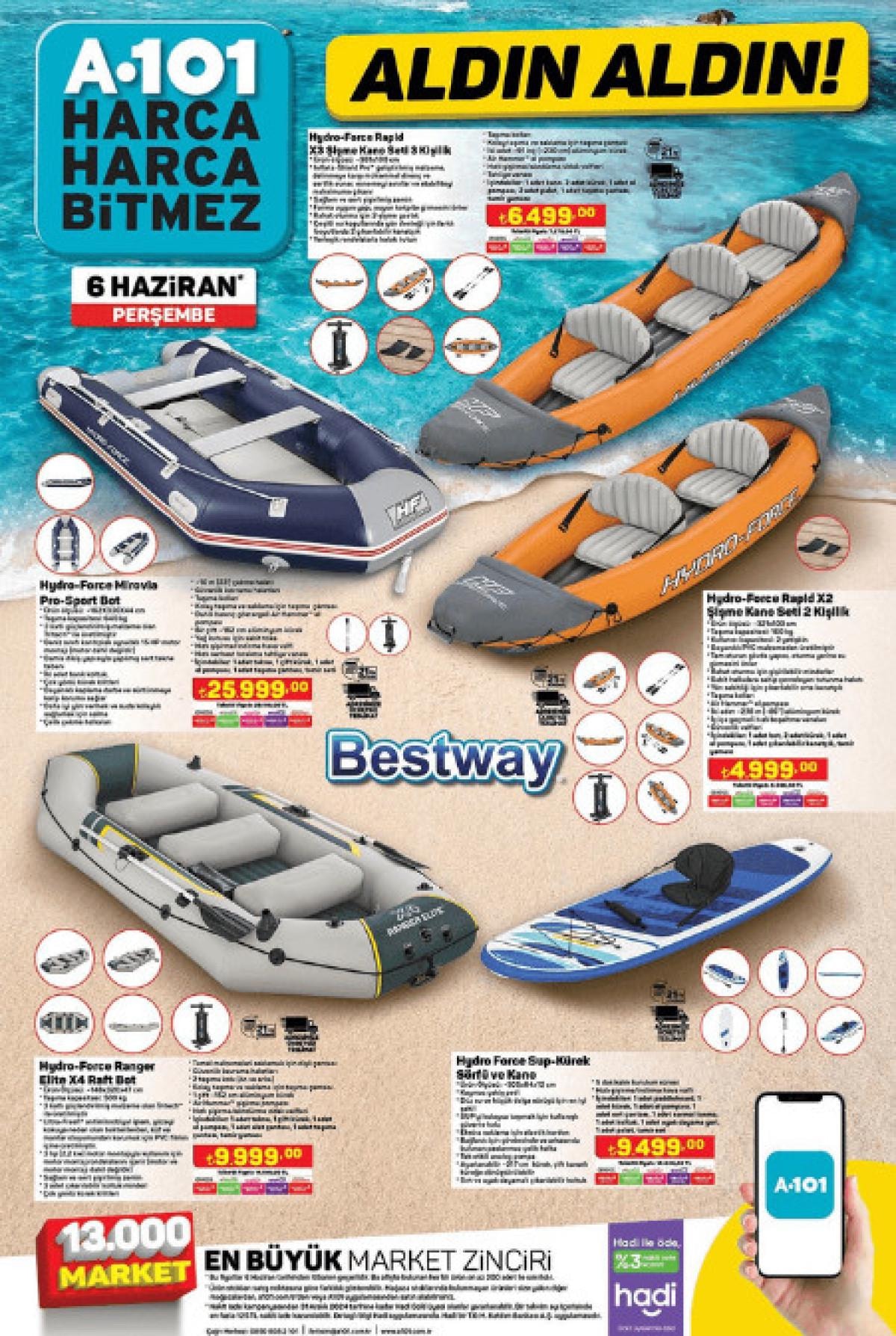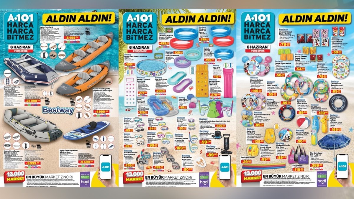 Bu haftaki indirimli ürünler arasında çocuk yüzme havuzu, bot, kano, plaj şemsiyesi, can simidi ve deniz yatağı gibi yazın vazgeçilmezleri bulunuyor.