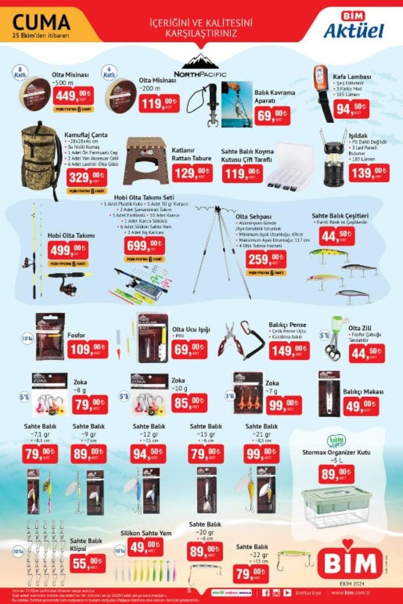 25 Ekim 2024 tarihinde BİM, aktüel ürünler kataloğuyla temizlik tutkunlarını ve balıkçılara hitap edecek özel ürünlerle raflarını dolduruyor. İşte BİM 25 Ekim Aktüel Katalog…