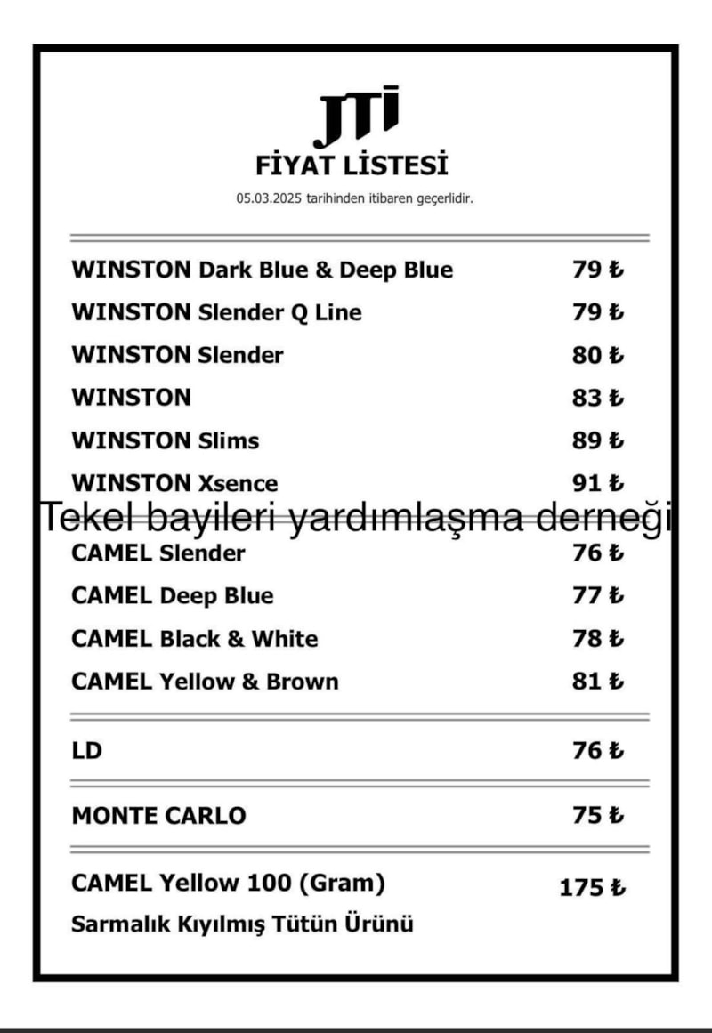 Tekel Bayileri Yardımlaşma Derneği (TBYD) Başkanı Erol Dündar, sosyal medya hesabından yaptığı açıklamada, JTİ sigara grubuna 8 TL zam yapıldığını duyurdu.