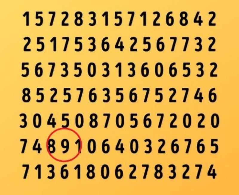 Aşağıdaki resimde yazılı bir dizi sayı göreceksiniz ve göreviniz '9' sayısını bulmak.