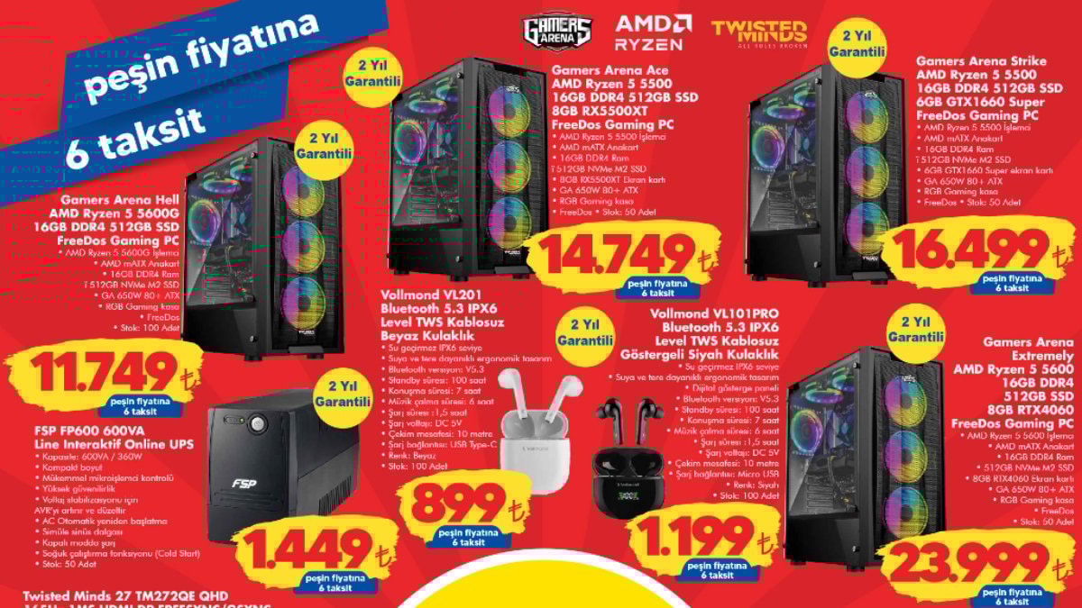 Bu haftaki aktüel ürünler arasında gaming bilgisayar kasası, kablosuz kulaklık, oyuncu koltuğu ve bebek arabası gibi farklı ürünler yer alıyor.