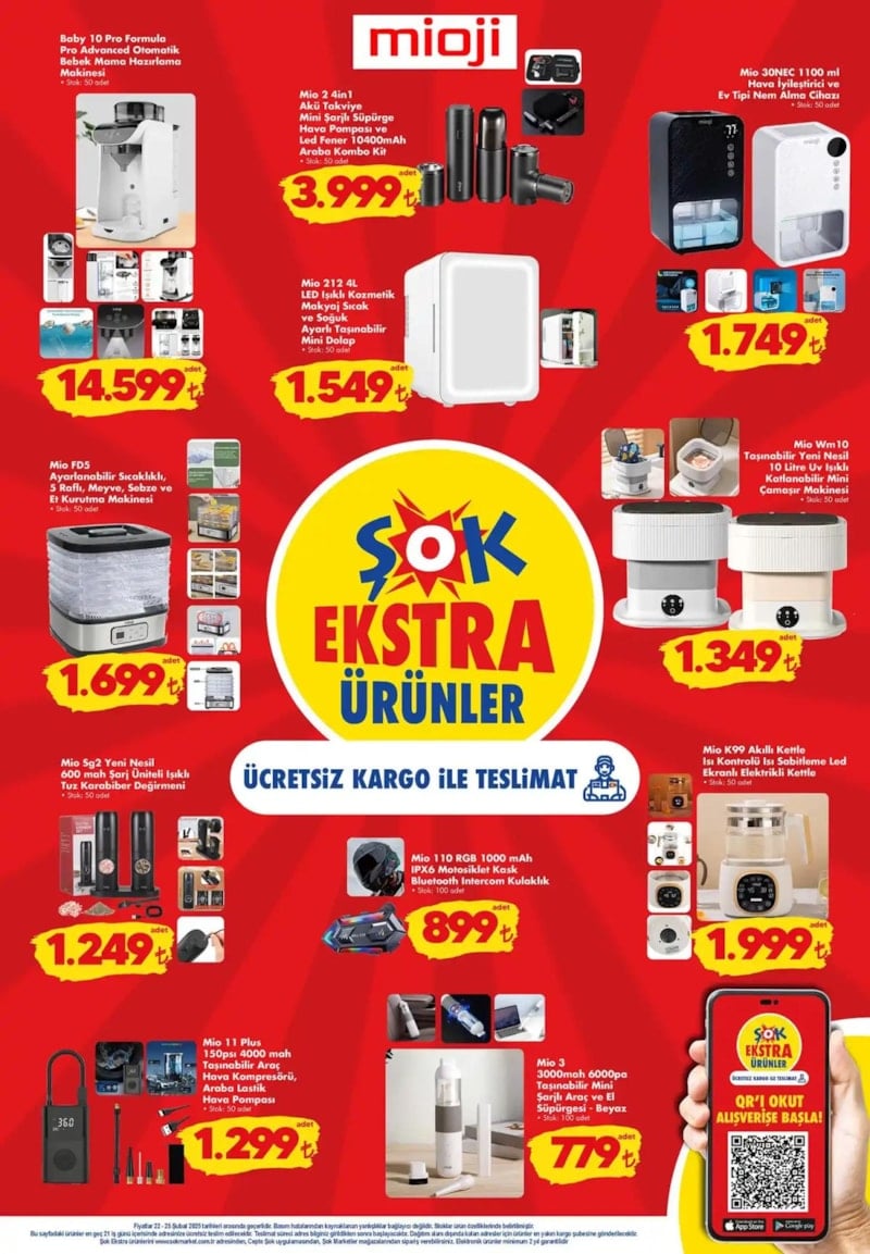 Mio akıllı cihazlar, otomatik bebek mama hazırlama makineleri, taşınabilir mini çamaşır makineleri ve ısı kontrollü kettle gibi hayatı kolaylaştıran yenilikçi ürünler hem ŞOK mağazalarında hem de Cepte ŞOK uygulamasında tüketicilerle buluşuyor.