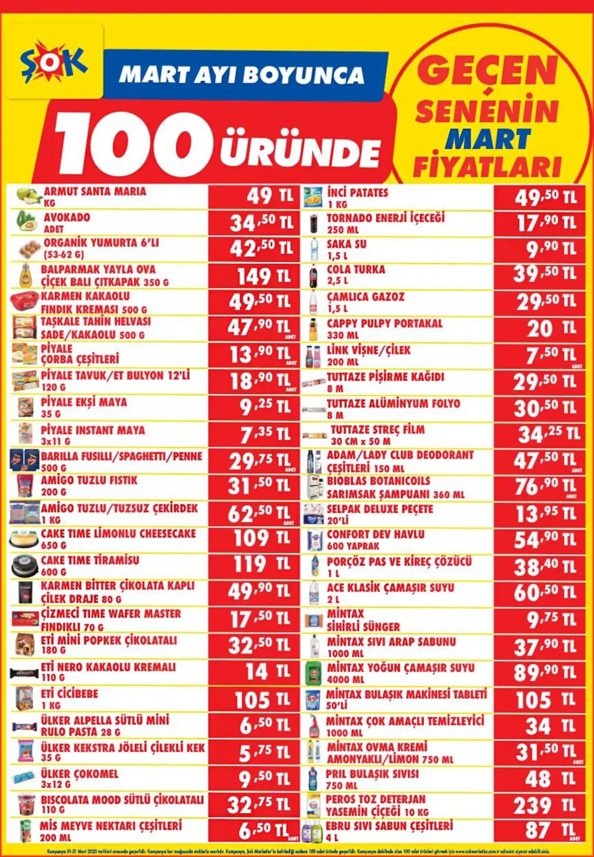 ŞOK, geçen yıl mart ayında satılan bazı ürünlerin fiyatlarını mart ayı boyunca sabitledi.