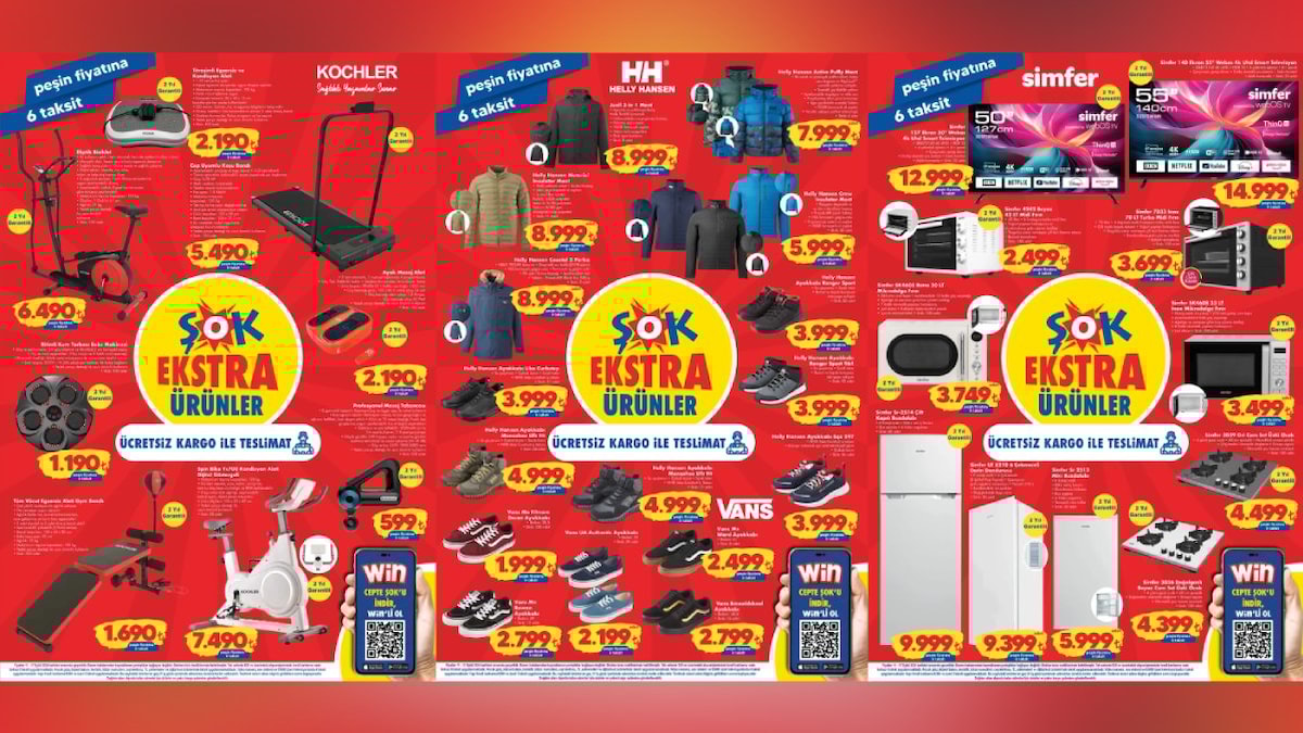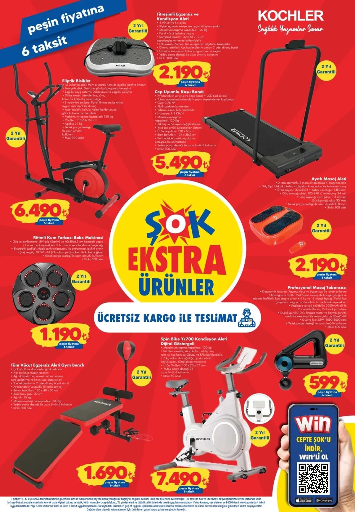 Titreşimli Egzersiz ve Kondisyon Aleti 2.190 TL, Kochler Cep Uyumlu Koşu Bandı 5.490 TL, Eliptik Bisiklet 6.490 TL, Ayak Masaj Aleti 2.190 TL ve Ritimli Kum Torbası Boks Makinesi 1.190 TL’den satışta olacak.