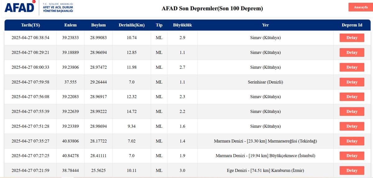 İşte 27 Nisan 2025 Pazar son dakika deprem listesi...