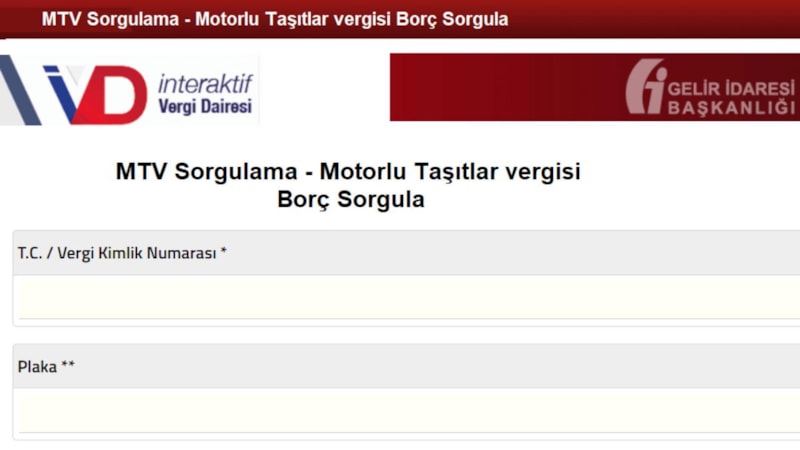 GİB MTV BORCU SORGULAMA VE ÖDEME EKRANI