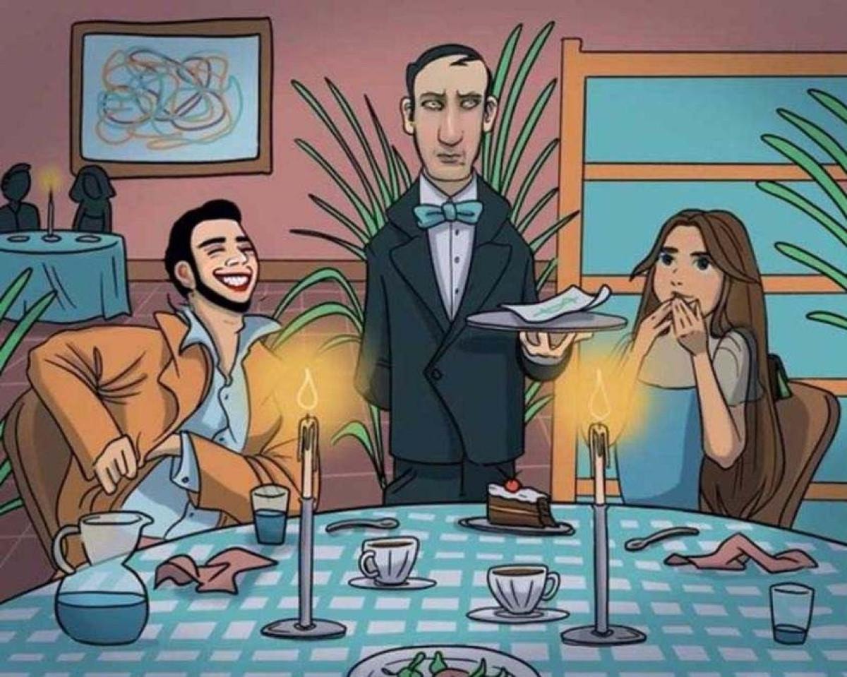 Görüntüdeki her ayrıntıya dikkatlice bakın. Masayı, arka planı ve hatta sahnedeki karakterleri tarayın.