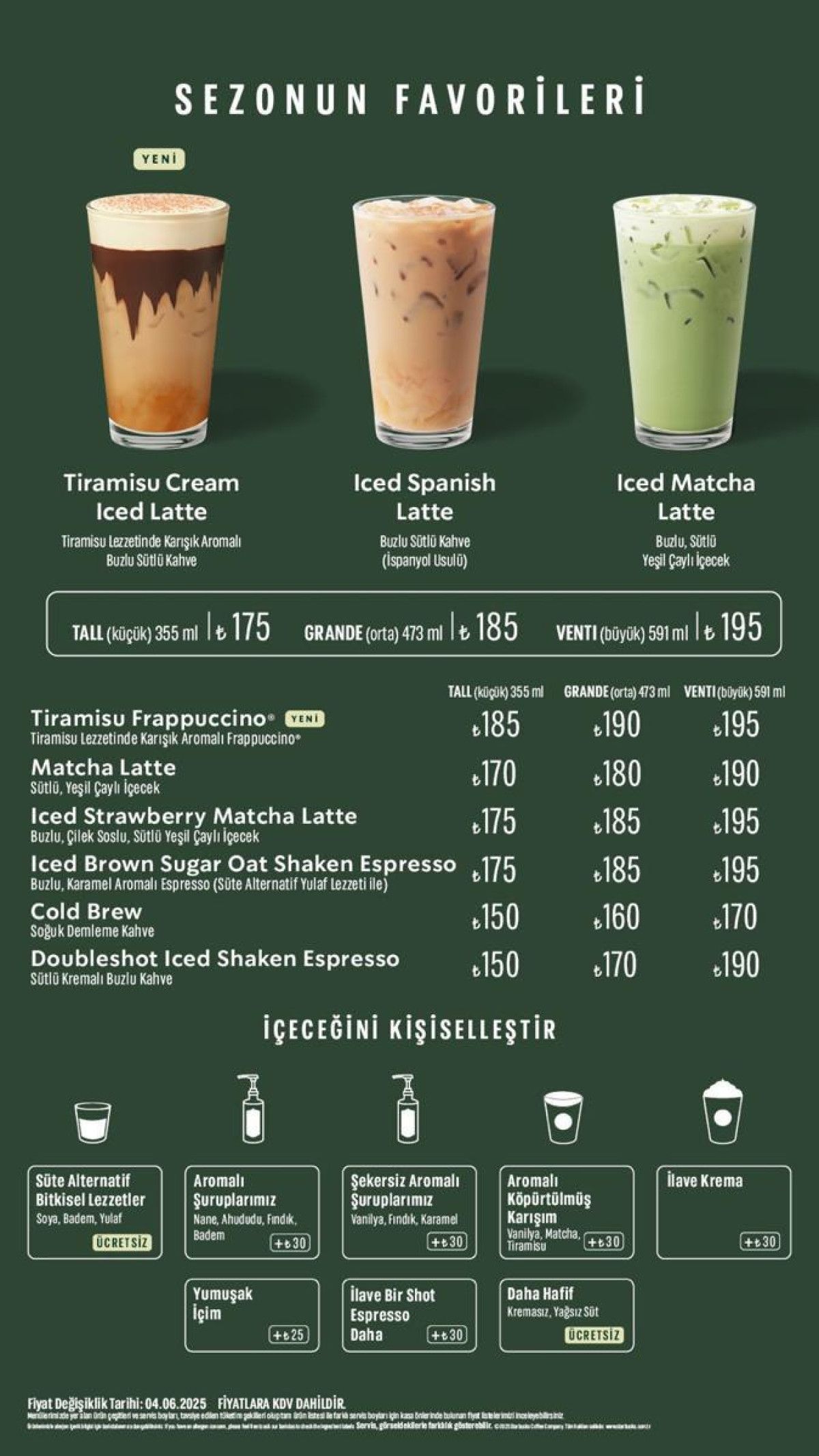 ZAMLI STARBUCKS FİYAT LİSTESİ 2025