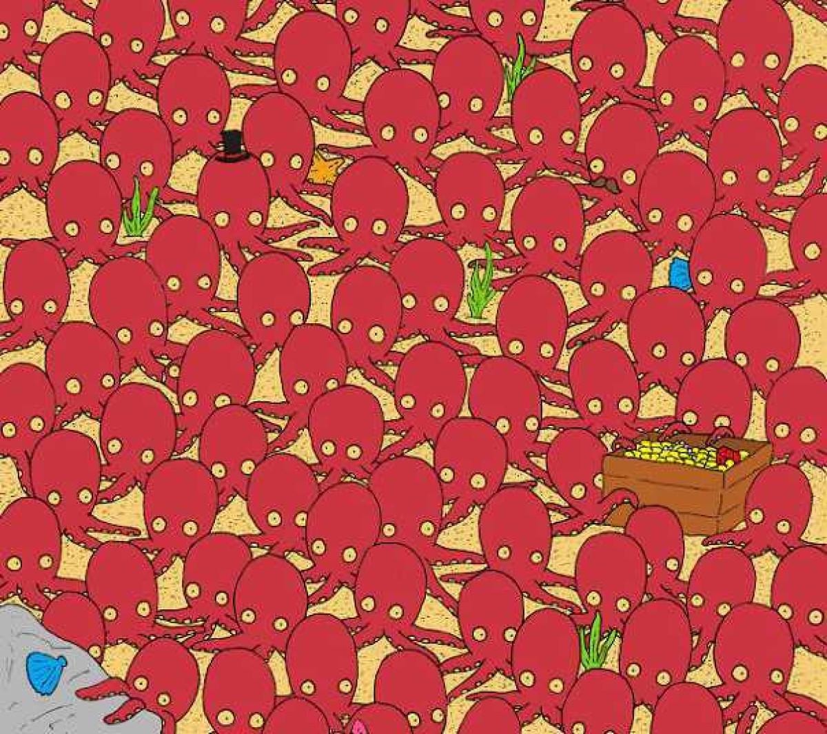 Sonra ahtapotların arasında saklanan balığı 7 saniyede bul!