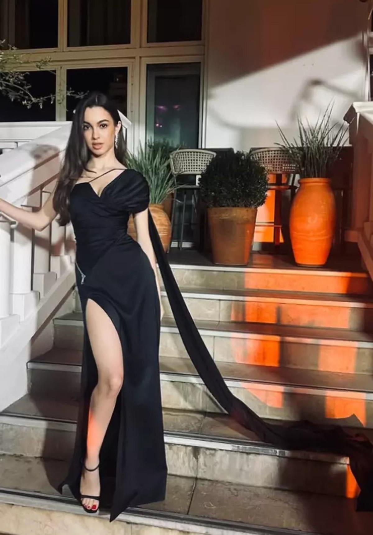 SİYAH DERİN YIRTMAÇLI ELBİSESİYLE BÜYÜLEDİ!
