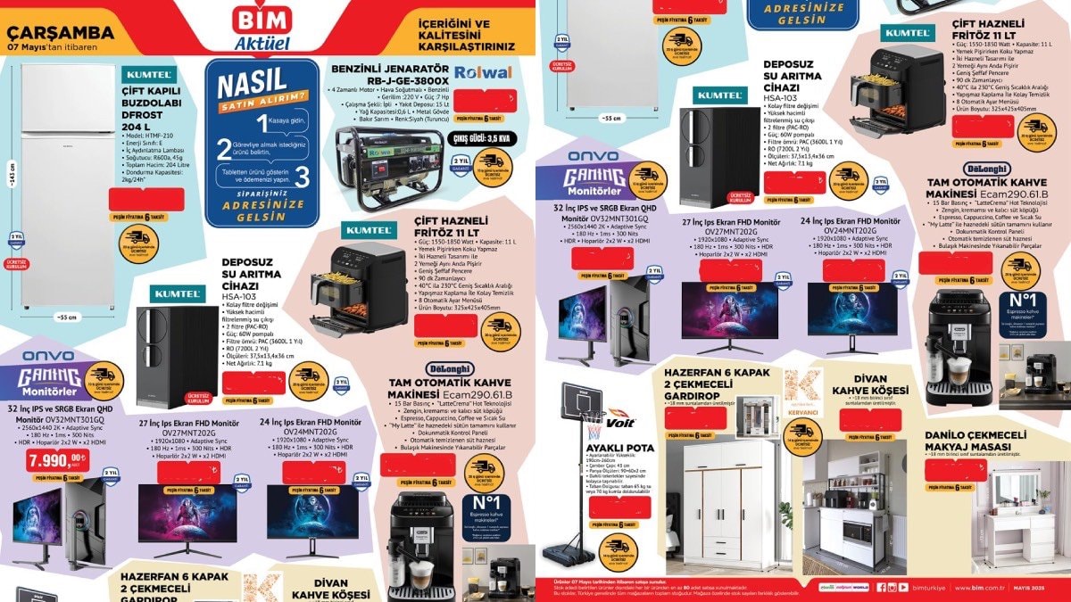 BİM, 7 Mayıs 2025 Çarşamba günü raflarını yine dopdolu bir katalogla tüketicilerin beğenisine sunuyor.