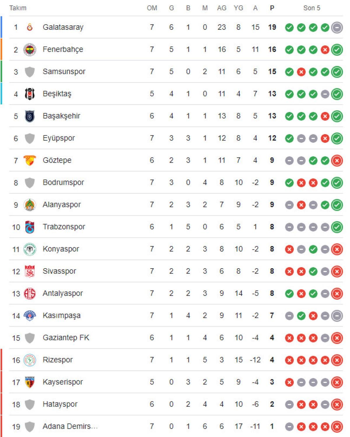 Lig’de bu hafta Galatasaray’ın beraberliği ve Fenerbahçe’nin önemli galibiyetiyle puan farkı 3’e düştü. Galatasaray hala liderliğini koruyor. İşte puan durumu: