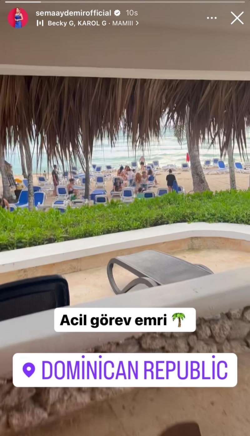 Sema Ayedemir sosyal medya hesabından yaptığı paylaşımda Dominik’te olduğu görünüyor. “Acil göre emri” sözleriyle yaptığı paylaşım sonrasında Sema Aydemir’in Nagihan Karadere yerine yarışmaya dahil olacağı iddia edildi.