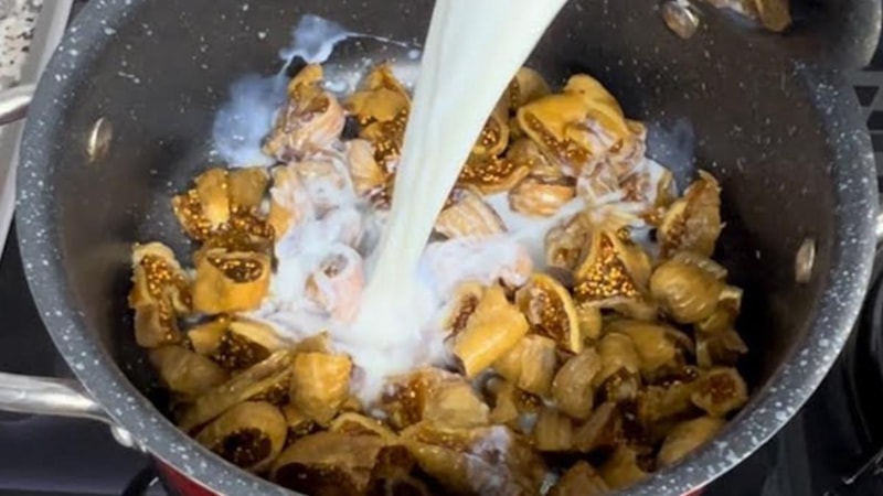 Daha önce kaynattığınız sütün içerisinde 3-4 adet kuru incir ekleyin. Ardından 5 dakika kaynatın.