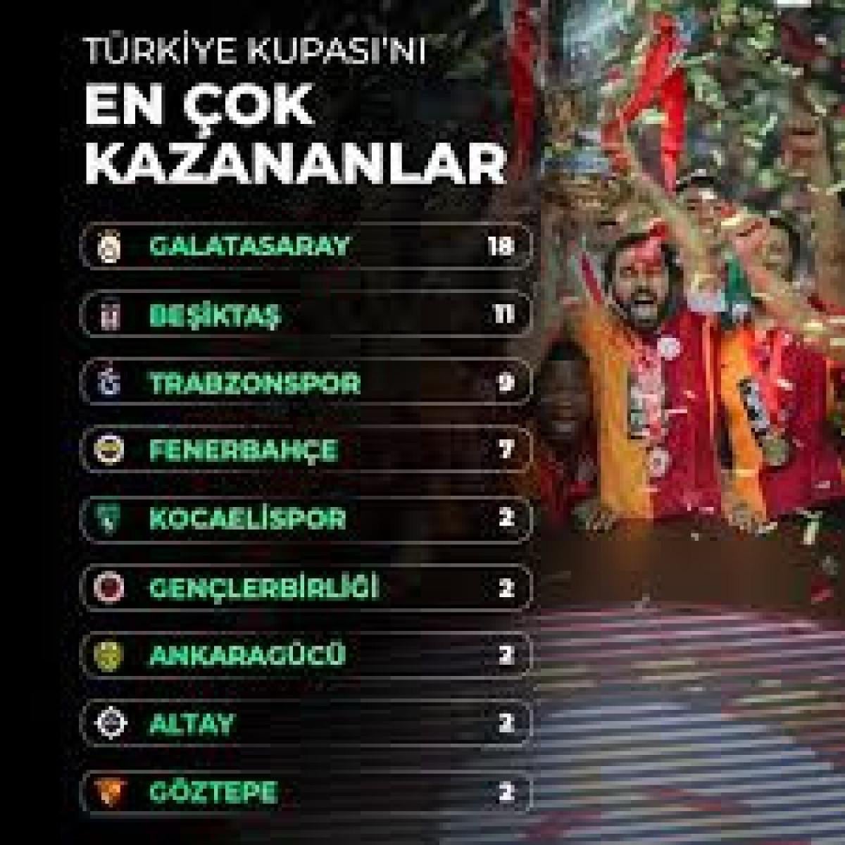Türk futbolunun en prestijli organizasyonlarından biri olan Ziraat Türkiye Kupası, yıllardır büyük heyecana sahne olurken, kulüplerin kupa koleksiyonları göz doldurmaya devam ediyor. İşte, takımların kupa sayıları…