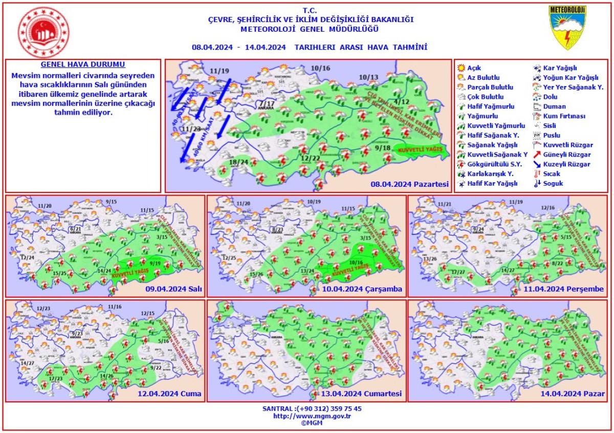 Yağışlar 9 Nisan 06.00'da başlayacak ve 10 Nisan 14.00'a kadar sürecek.