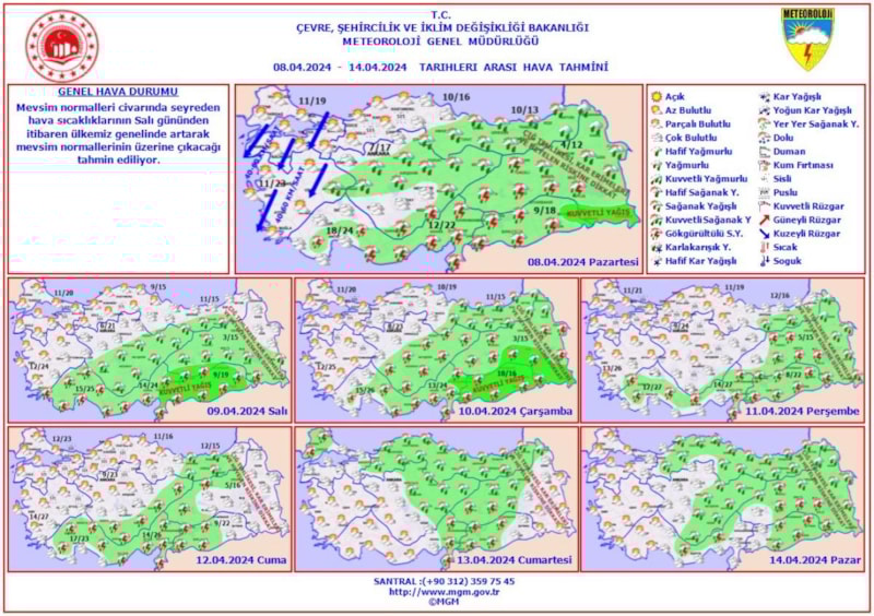 Meteoroloji Genel Müdürlüğü tarafından yapılan uyarıya göre, ülkenin Güneydoğu illeri için yarın sabaha uyarı verildi. Birçok ilde etkili olması beklenen sağanak yağış, 9-10 Nisan boyunca sürecek.