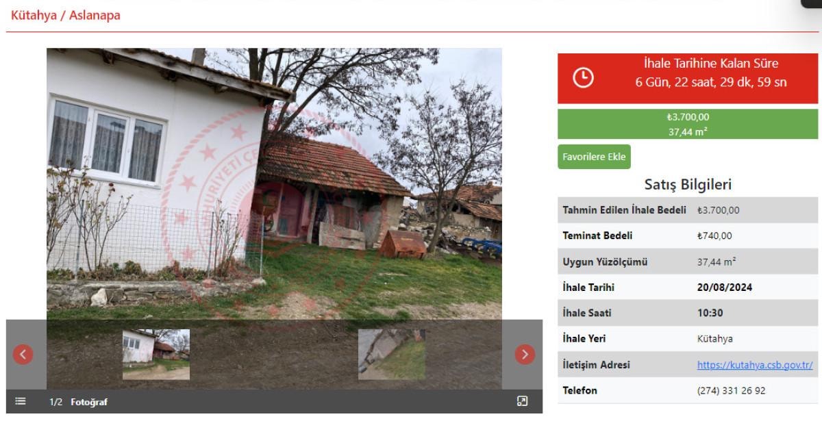 Milli Emlak’ın resmi sitesinde yayınlanan ilana göre, Kütahya’da 3 bin 700 TL’ye bir arsa satışa sunulacak.