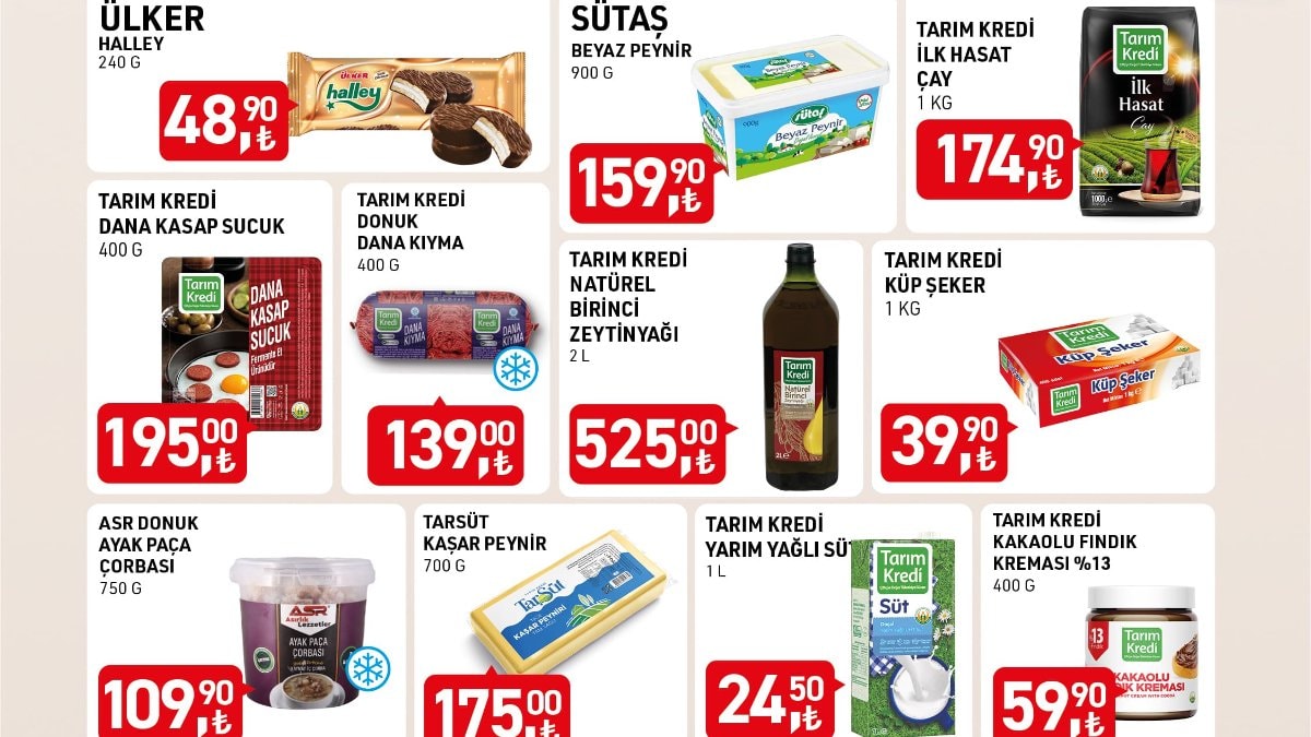 Tarım Kredi Kooperatif marketlerinde zeytinyağı, peynir, sucuk, kıyma, şeker, çay, diş bakımı, televizyon gibi ürünlerde katkat fırsatlar yer aldı.