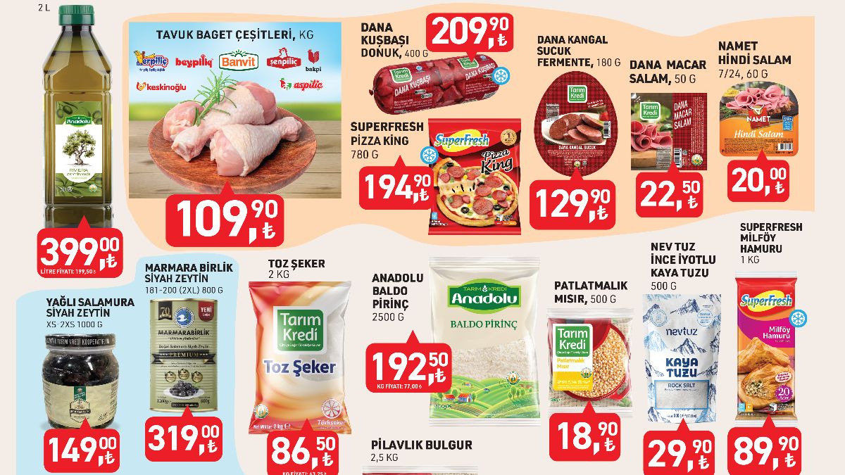 - Temel gıda ve temizlik ürünlerinde cazip fiyatlar mevcut.
