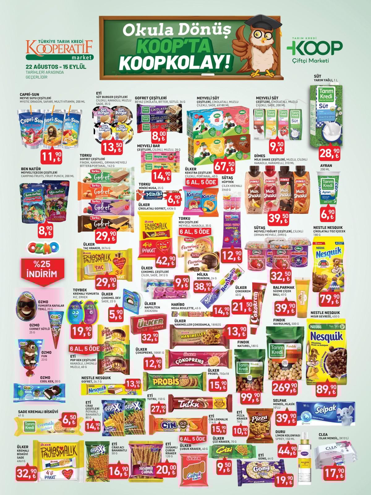 Aktüel ürün yelpazesi ile müşteri memnuniyetini hedefleyen Tarım Kredi Kooperatif Market, yalnızca günlük ihtiyaçlar değil, okul alışverişi konusunda da ailelerin tercihi oluyor.