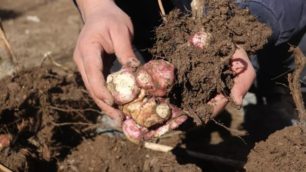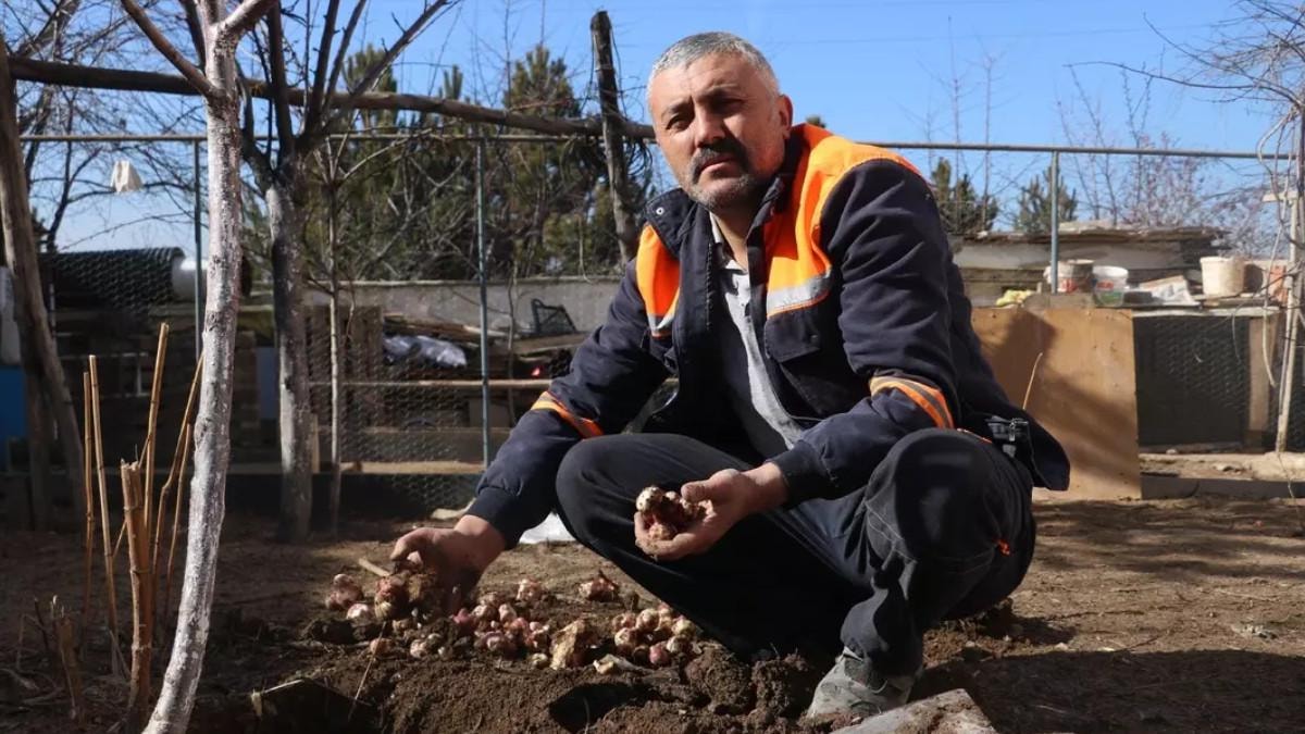 Doğada kendiliğinden yetişen yer elmasını tarlasına ekip çoğaltmayı başaran Sivaslı üretici, yoğun talep görüyor.