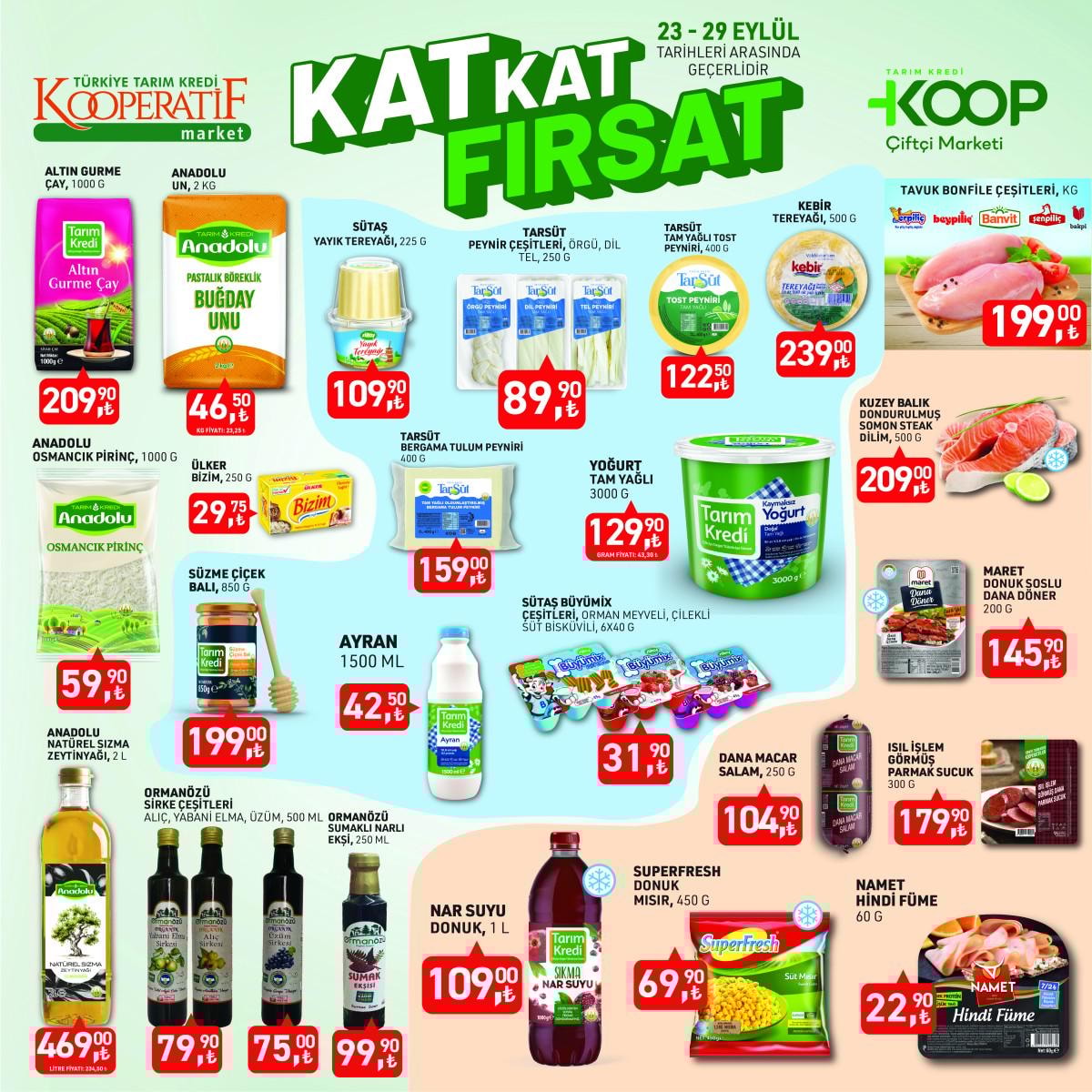 - Tarım Kredi Kooperatif Marketleri, 23-29 Eylül tarihleri arasında birçok üründe indirim sunarak bütçe dostu alışveriş fırsatları sağlıyor.