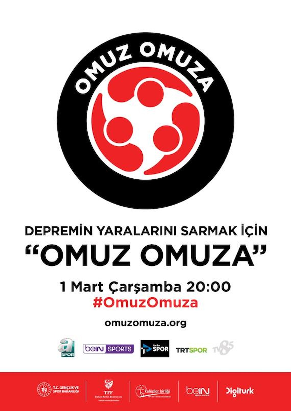 A Spor, beINbeIN Sports, D Smart Sports, TivibuTivibu Spor, TRT Spor ve TV 8,5'un ortak canlı yayın gerçekleştireceği "Omuz Omuza" dayanışma ve yardımlaşma kampanyası, depremzedelere destek olacak.