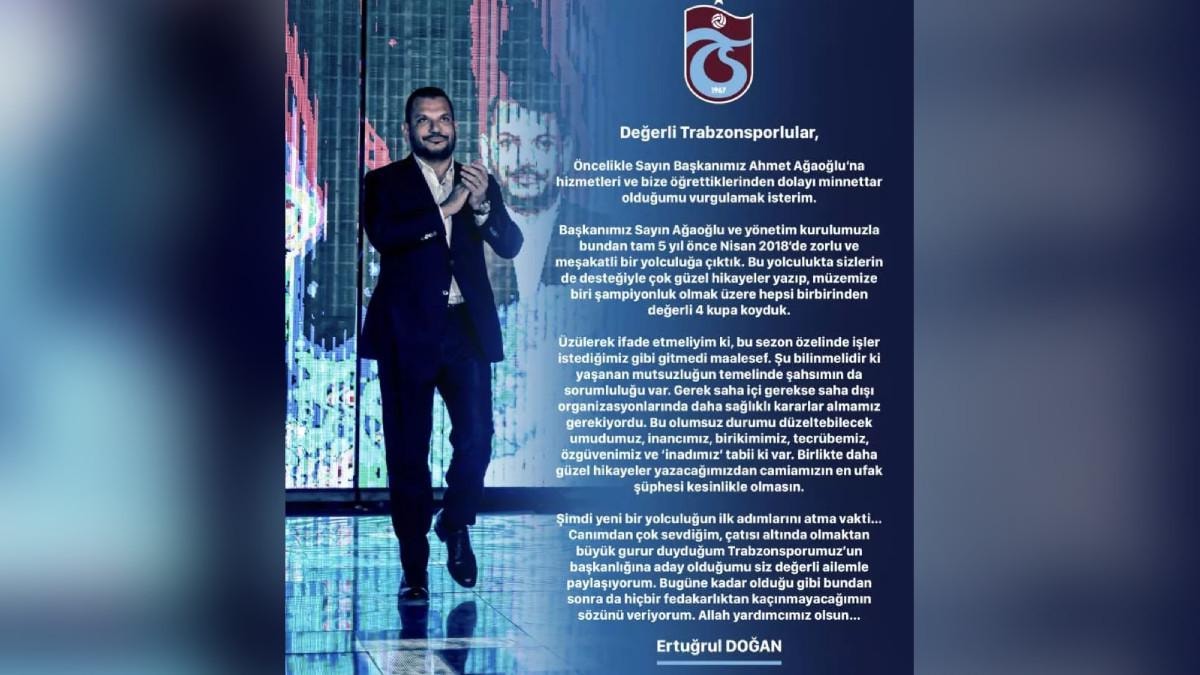 Avcı’nın istifasının ardından başkanlık görevine vekalet eden asbaşkan Ertuğrul Doğan, sosyal medya hesabından yaptığı paylaşımla başkanlığa aday olduğunu duyurdu.