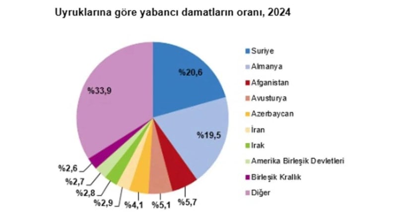 Bu rakamlar, Türkiye’de yabancı gelinlerin yabancı damatlara oranla yaklaşık 5 kat daha fazla olduğunu ortaya koydu.