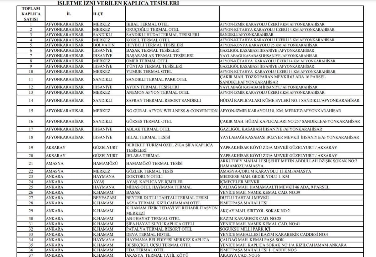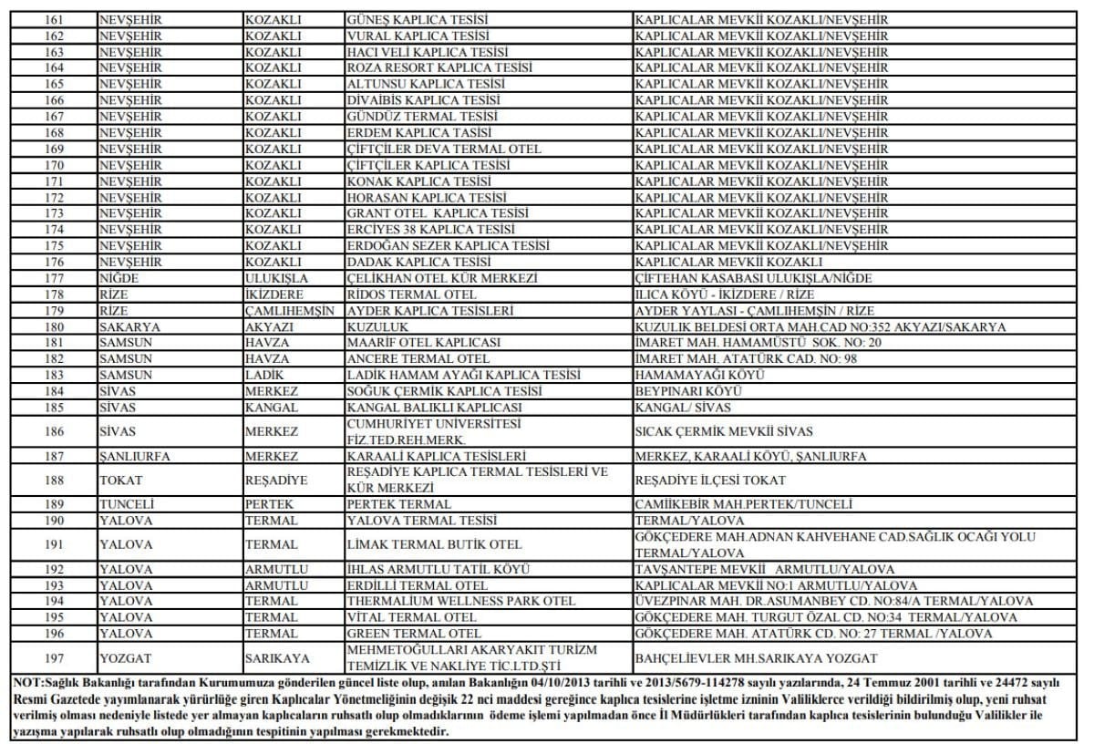 Sağlık Uygulama Tebliğinin "2.4.4.J - Kaplıca Tedavileri" başlıklı bölümünün 3 üncü maddesinde "Kaplıca tedavisine gerek görülenler, Sağlık Bakanlığınca işletme izni verilen kaplıca tesislerine müracaat edebiliyor.