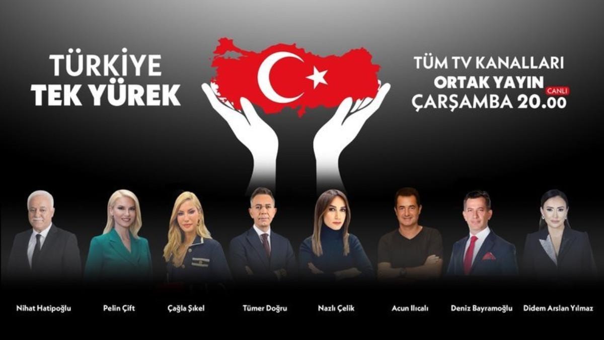 Başta Kahramanmaraş olmak üzere Adana, Gaziantep, Hatay, Malatya, Kilis, Osmaniye, Diyarbakır, Şanlıurfa ve Adıyaman'da büyük hasara sebep olan depremin ardından depremzedelere destek olmak amacıyla ortay yayın düzenleniyor. Televizyon Yayıncıları Derneği tarafından yapılan açıklamada şu ifadelere yer verildi: