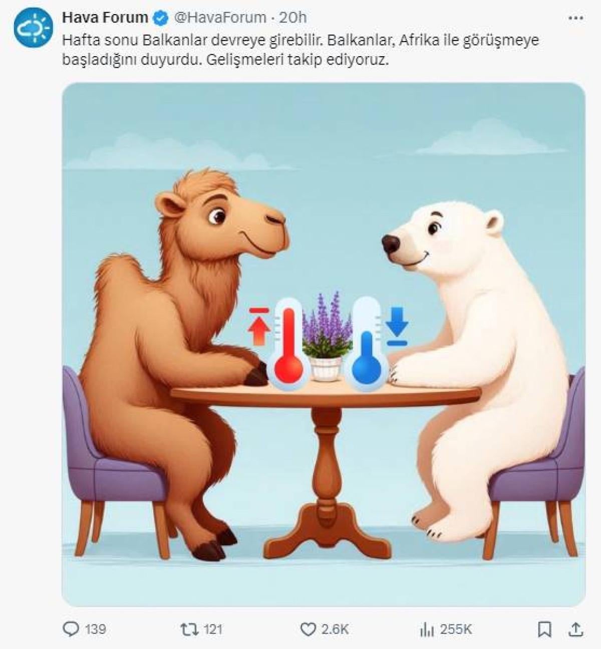 Meteoroloji kaynağı Hava Forum, sosyal medya hesabından Balkanların devreye girebileceğini belirtti.