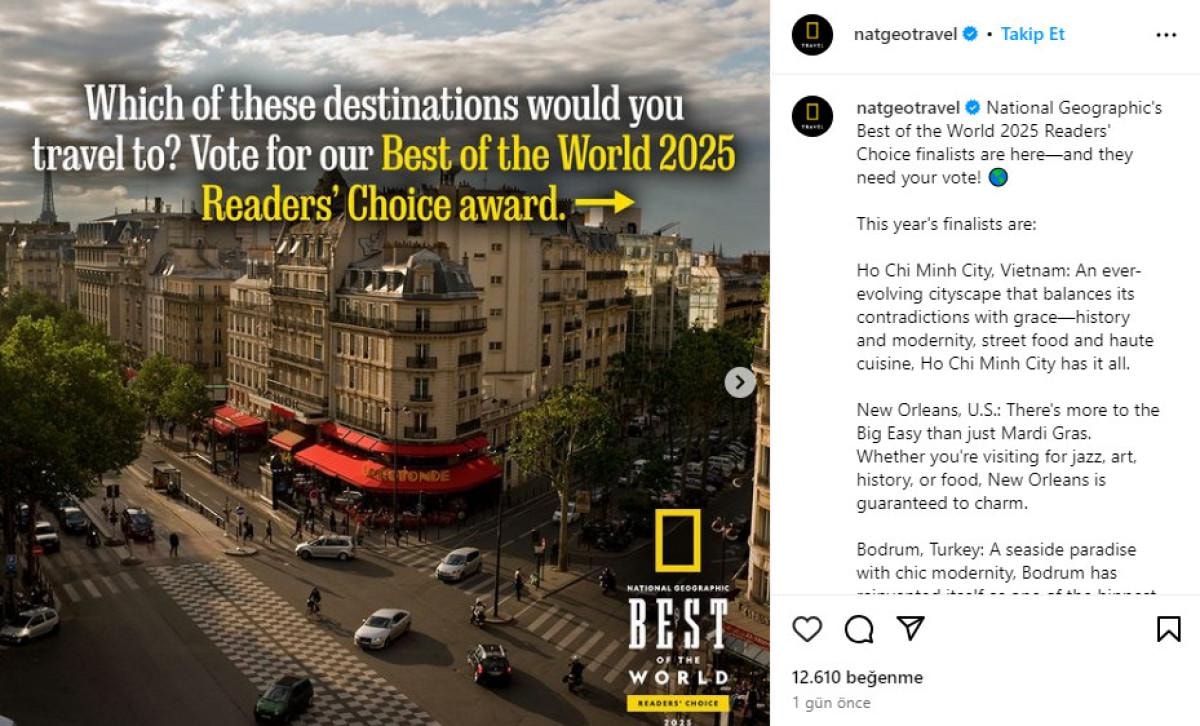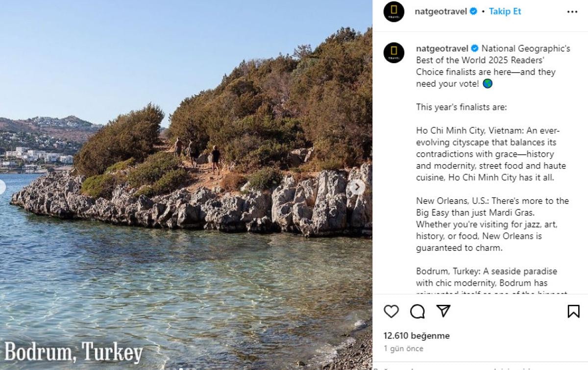National Geographic Travel’ın 46,5 milyon takipçisi bulunan Instagram hesabından finalistler açıklanırken Bodrum, muazzam atmosferi ve Akdeniz’in en havalı lokasyonlarından biri haline geldiği vurgulandı.