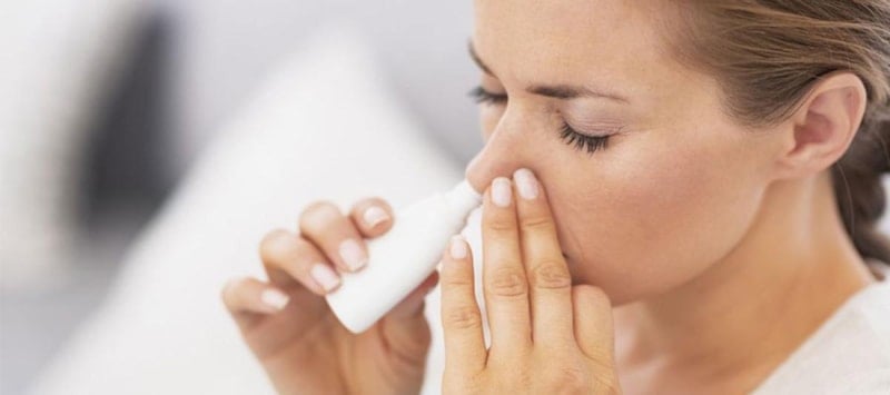 - Başınızı hafifçe eğin ve bir burun deliğine tuzlu suyu sıkın.