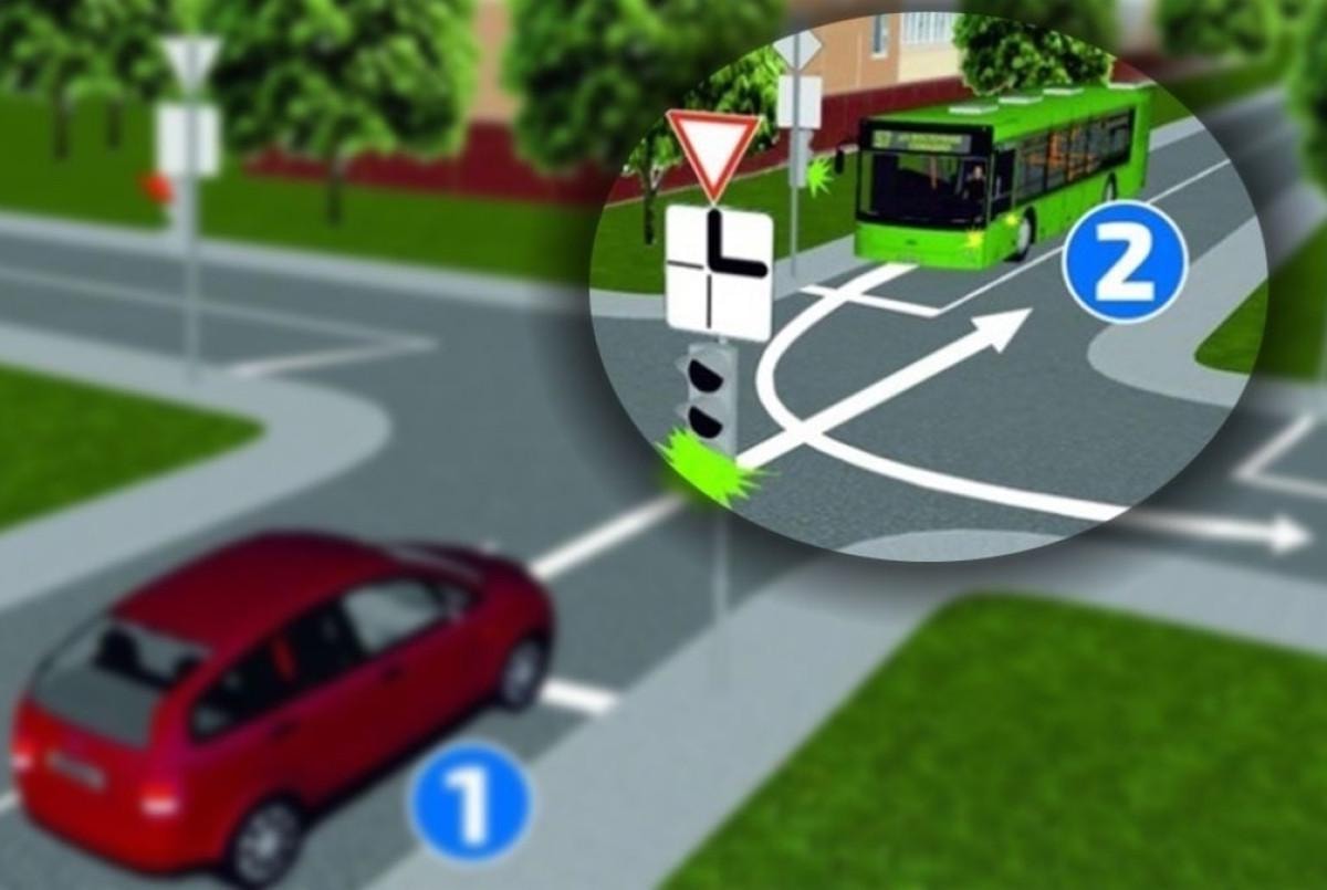 Yukarıdaki resimde bir otobüs ve bir araba dönüş yapmak istiyor. Ancak birinin önceliği var.