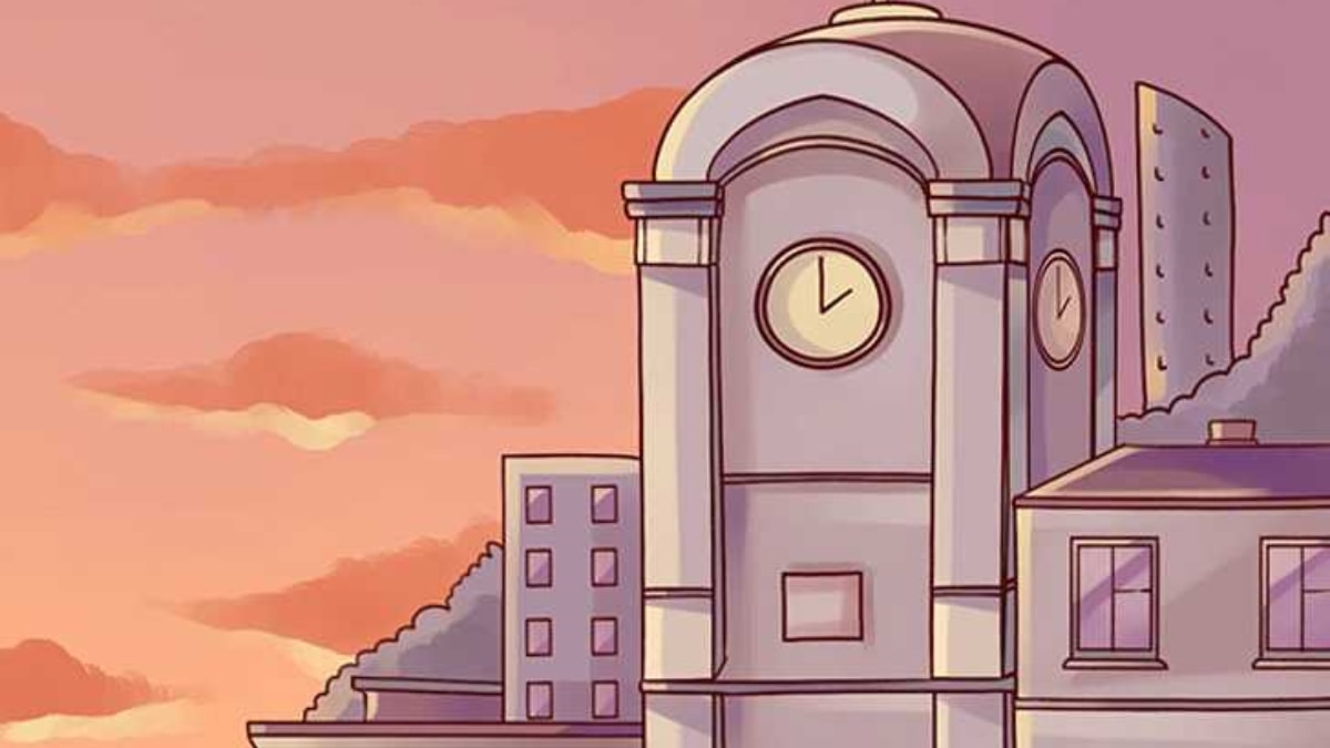 Yukarıda paylaşılan görselde bir saat kulesi sahnesi tasvir edilmiştir. Saat, saati 2 olarak göstermektedir.