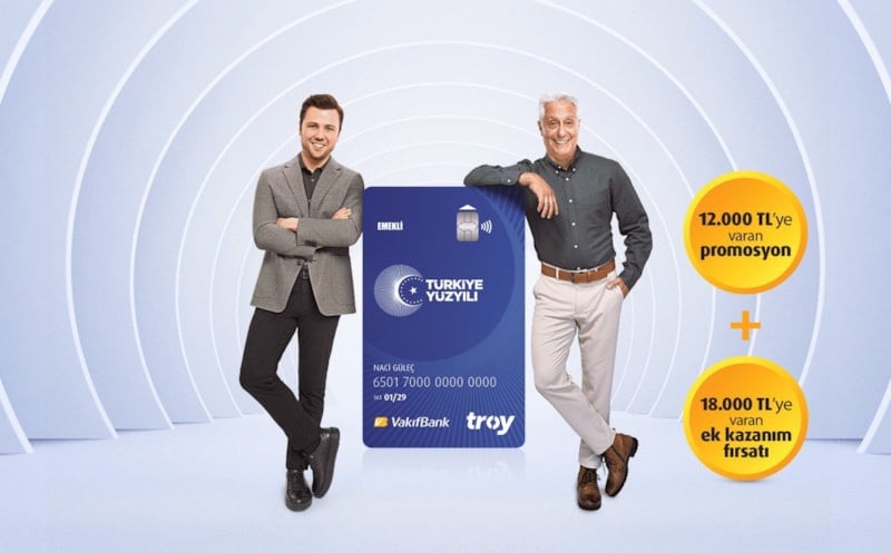 Maaşını VakıfBank'a taşıyacak SGK emeklilerimize, 12.000 TL'ye varan promosyona ek olarak; VakıfBank Troy Emekli Kredi Kartı ile 9 ay boyunca yapacakları alışverişler için toplamda 18.000 TL’ye varan ek kazanım fırsatı sunulacaktır.