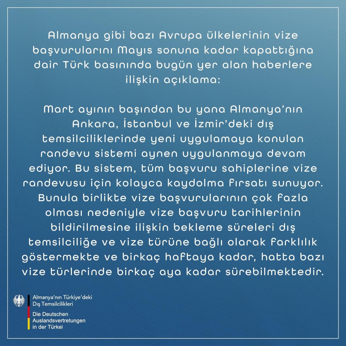 İlgili büyükelçiliklere göre vize başvurularında yoğunluk olması nedeniyle randevuların ileri tarihlere sarkabildiği belirtildi.