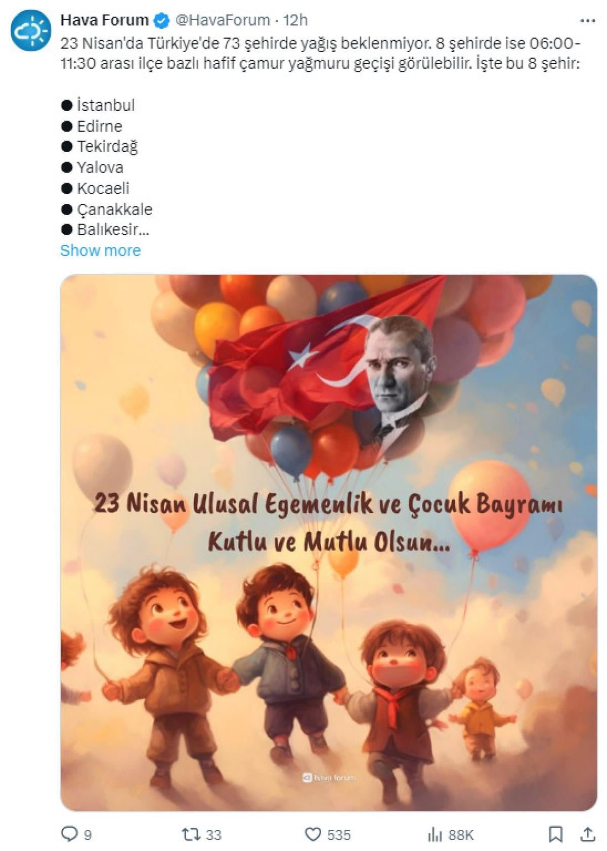 İstanbul, Edirne, Tekirdağ, Yalova, Kocaeli, Çanakkale, Balıkesir ve Bursa gibi şehirlerimizde yaşayan dostlarımız için önemli bir uyarı var: 23 Nisan Salı günü için hazırlıklı olun!