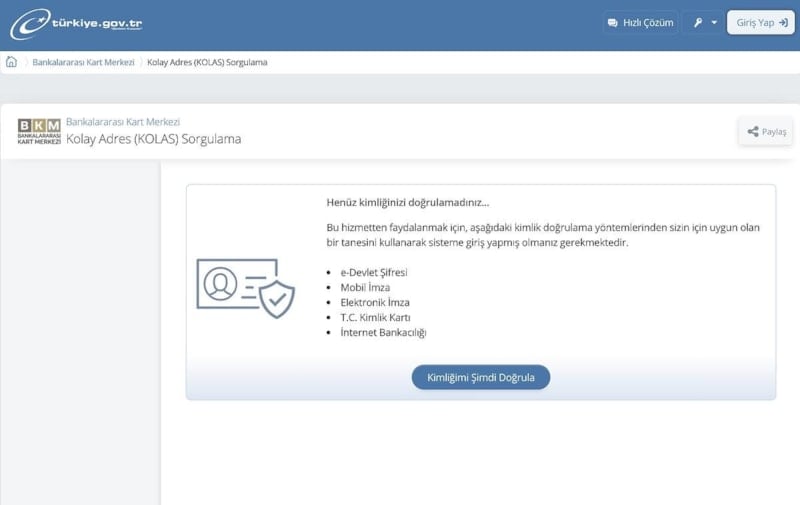 Hizmeti kullanmak için e-Devlet Kapısı'na giriş yaparak "Kolay Adres Sorgulama" başlığı aratabilirsiniz.