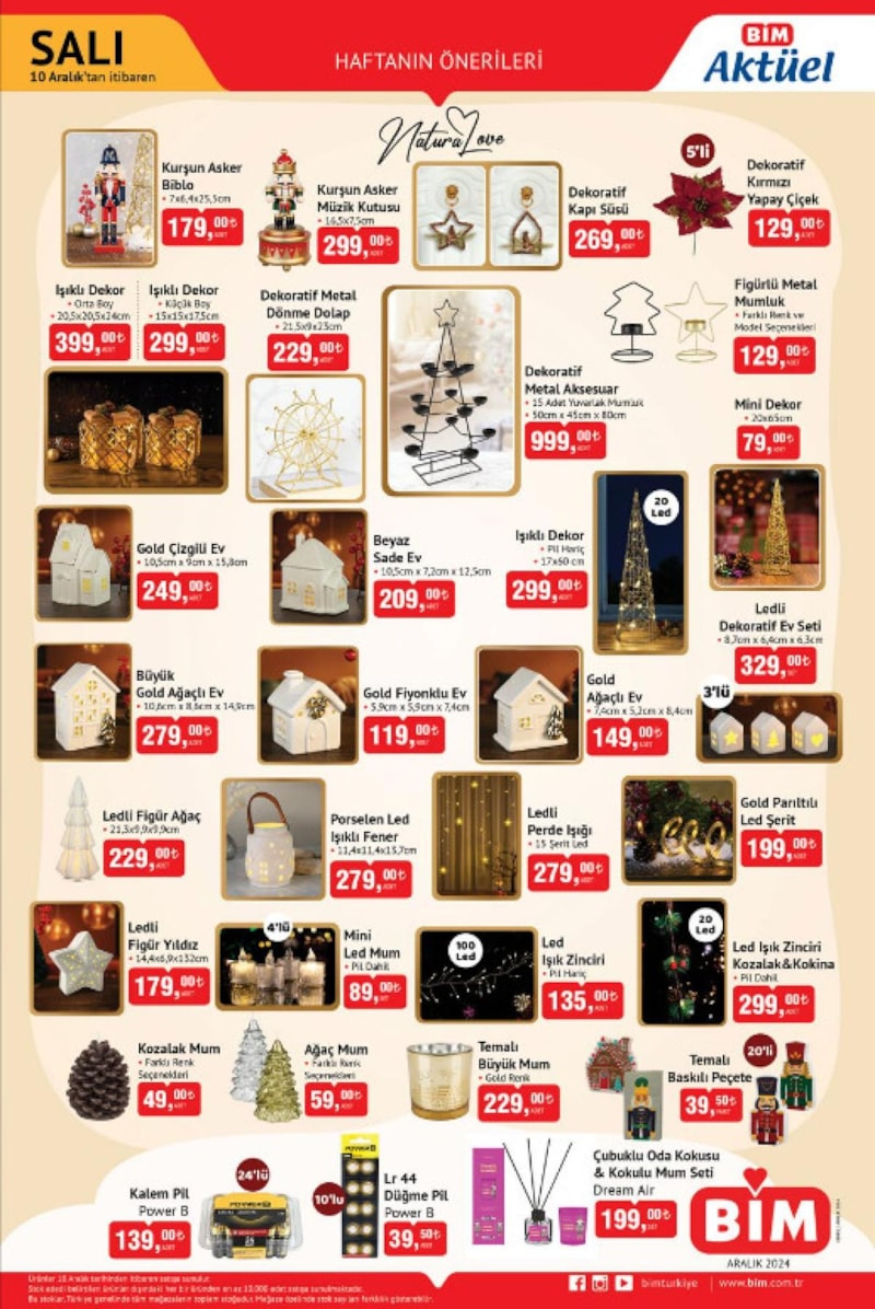BİM’in, yeni yıla özel dev indirim kampanyası başlıyor. Yeni yıl temalı dekorasyon ürünleriyle evinize sıcak ve neşeli bir hava katabilirsiniz. İşte BİM 10 Aralık Aktüel Katalog