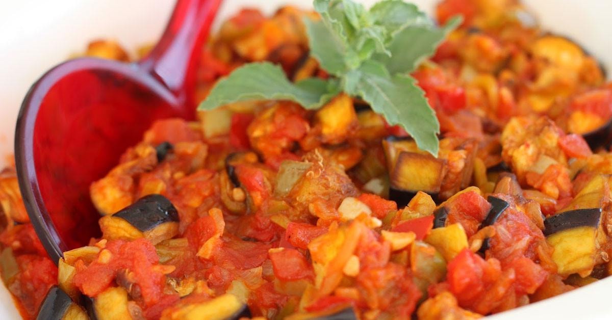 Yapılışı: Sebzeleri doğrayıp zeytinyağında soteleyin. Domates ve baharatlar ekleyip pişirin. Soğuk olarak servis edin.