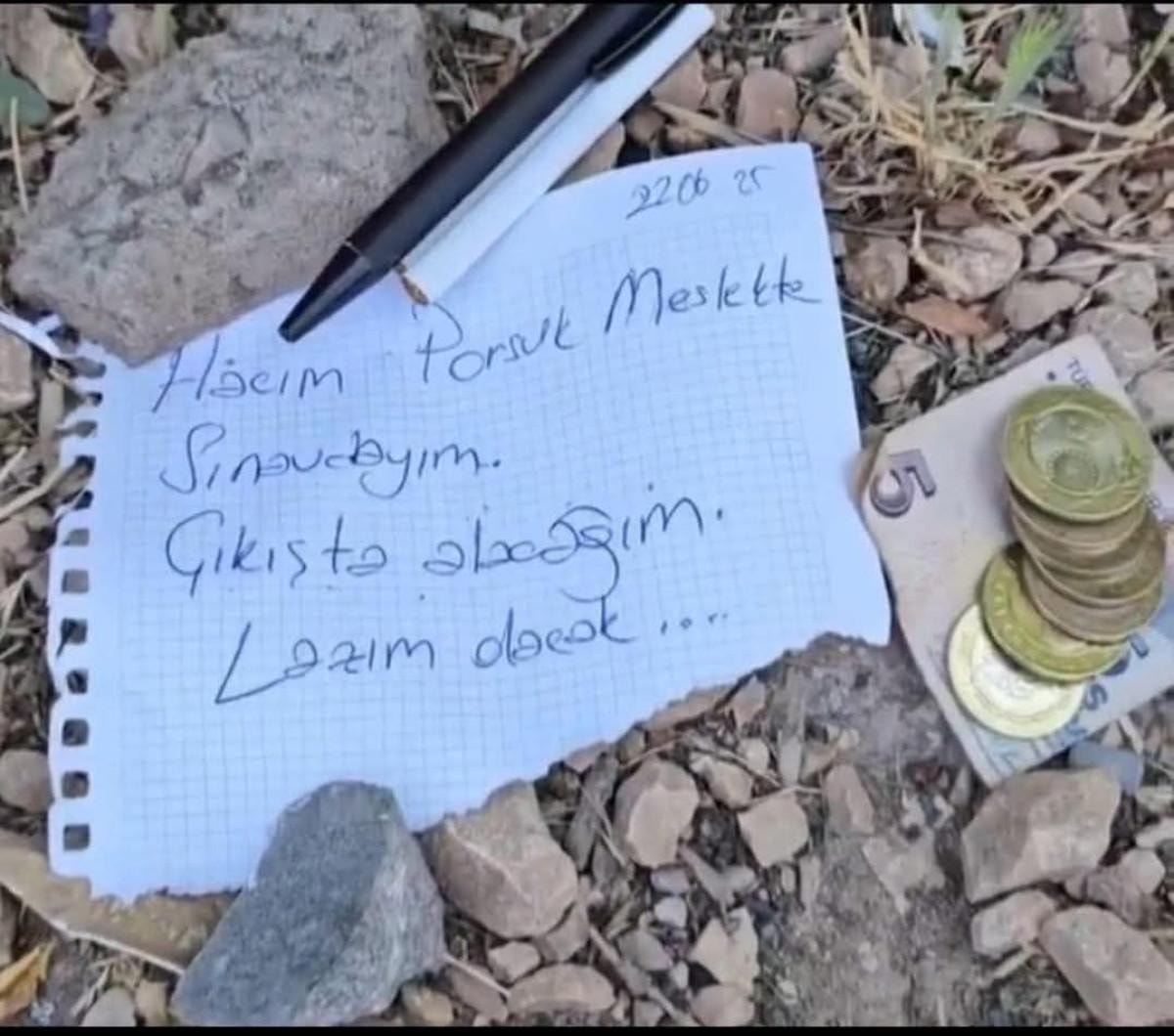Eşyalarını okulun kenarına bırakan adayın yazısı ise görenleri duygulandırdı.