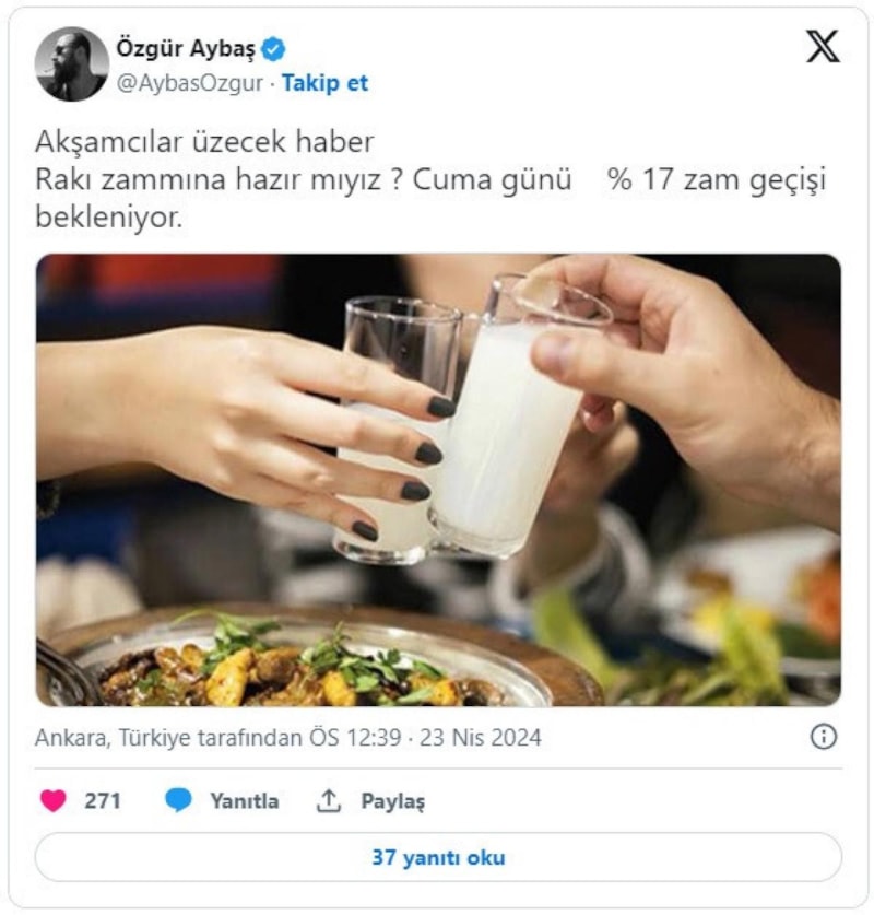 Aybaş, sosyal medya hesabından "akşamcıları üzecek haber" diye paylaştı.