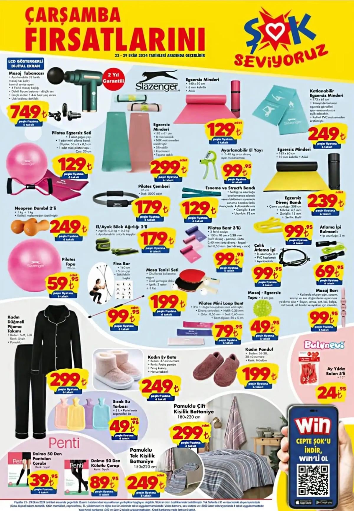 Katalogda kadın pijama takımları, sıcak su torbası, egzersiz minderi ve pilates ekipmanları gibi ürünler de yer alıyor. Ayrıca mutfak ve banyo gereçleri de uygun fiyatlarla satışa sunulacak.