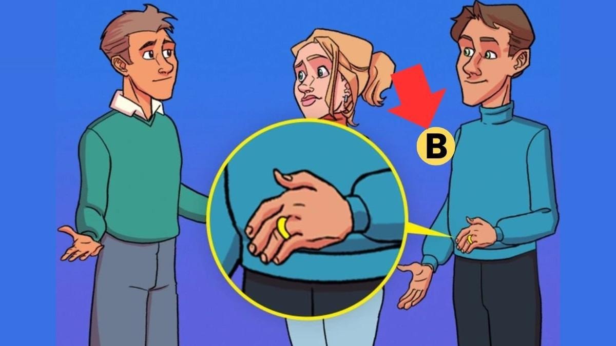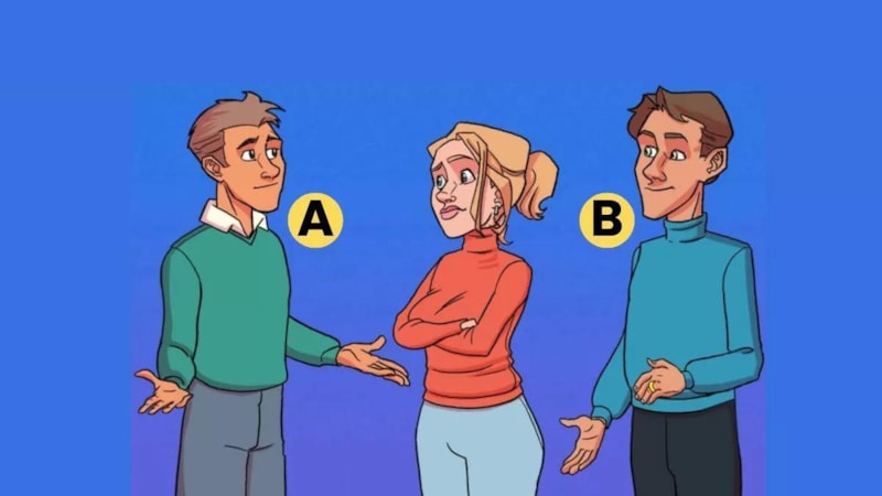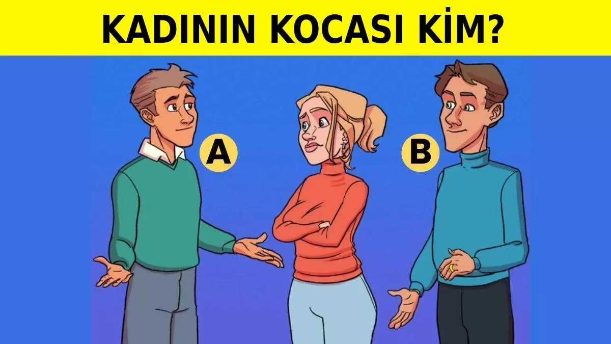 Resimde bir kadın ve yanında iki erkek yer alıyor. Hangi adamın kadının kocası olduğunu tespit etmeniz gerekiyor.